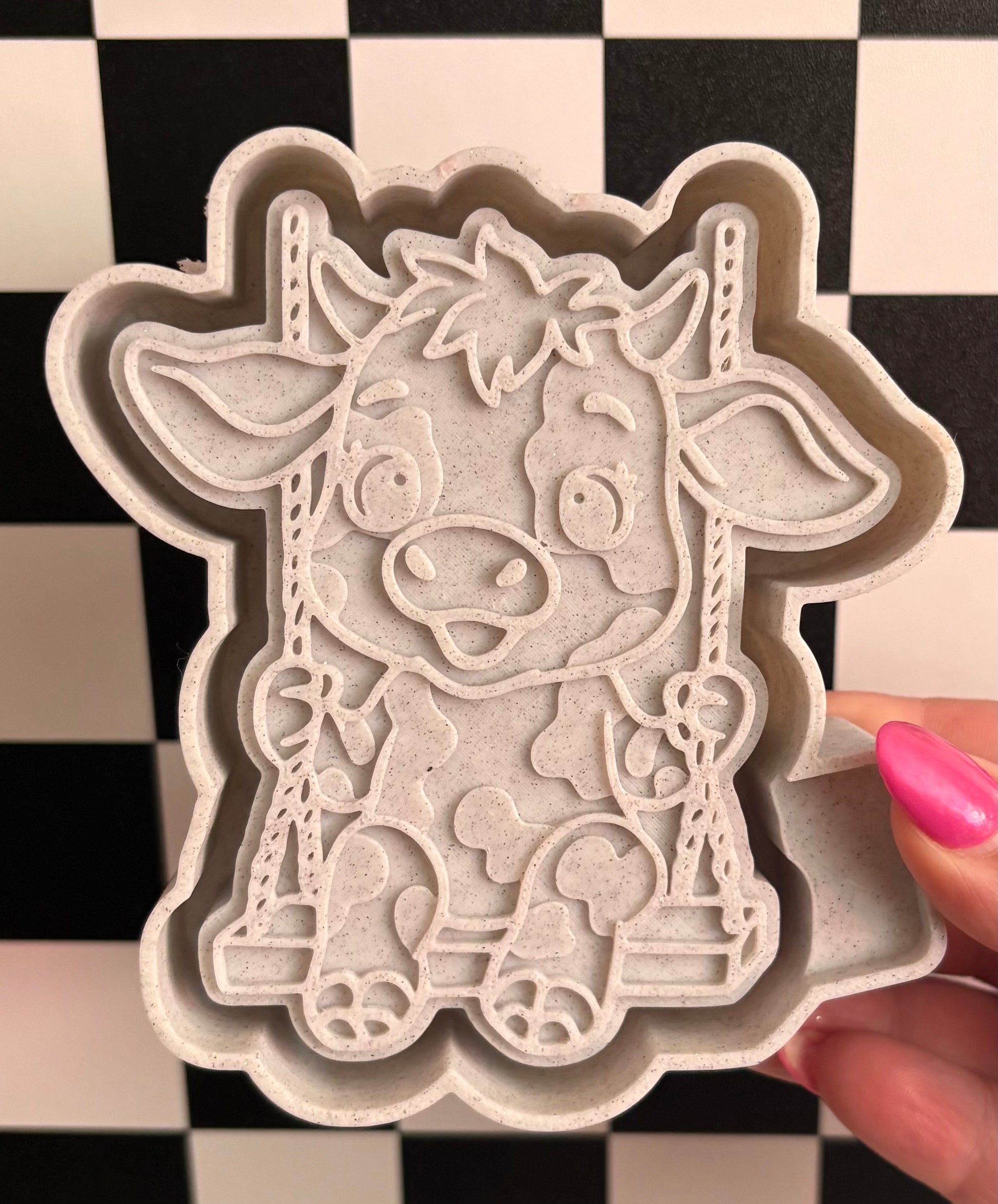 Hand-poured silicone mold, heat-safe up to 400°F. Approximately palm-sized—feel free to message for exact measurements.